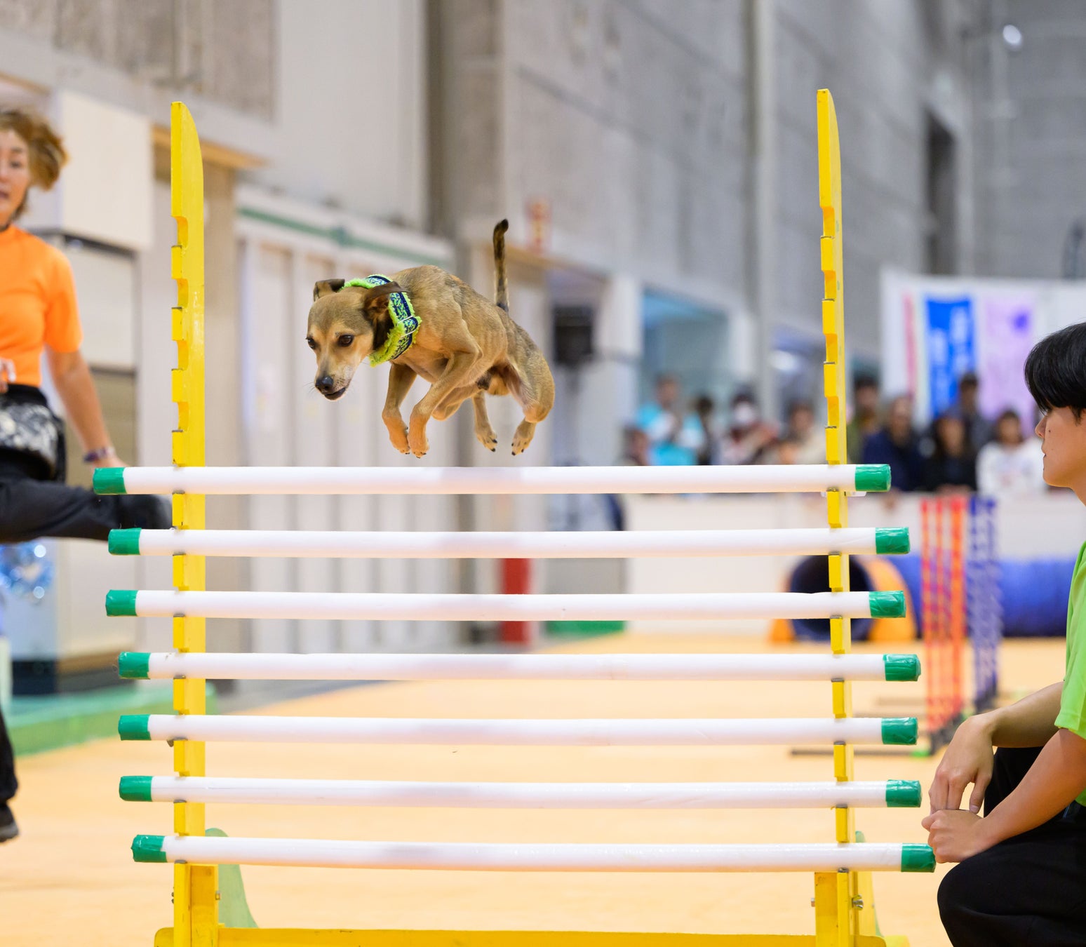運動広場では、愛犬と一緒に参加できる運動会やしつけ教室などの参加型イベントを開催します。また「グエンタ☆ショー」では、訓練されたワンちゃん達が飼い主さんと様々なフォーメーションを展開するチームパフォーマンス競技「カドリール」や、高いハードルを飛び越える技を披露します。