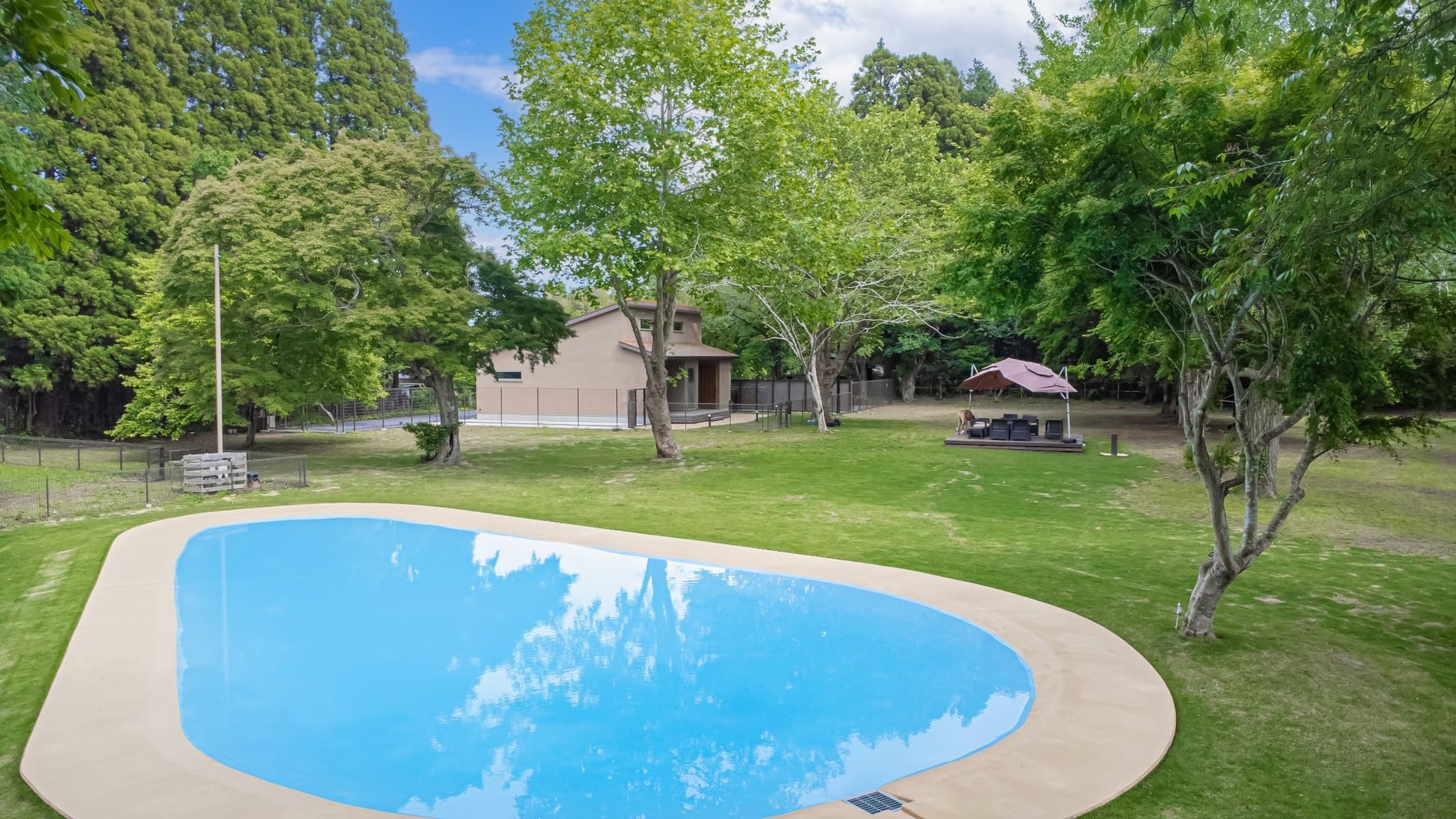 約9,000㎡に広がるプライベートドッグランやプールでは、大型犬や複数頭でものびのびと遊べる贅沢な広さを確保。四季折々の自然に囲まれながら、人目を気にせず愛犬と過ごす、ただ一つの時間。