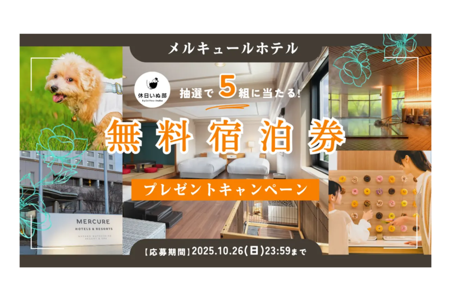 株式会社イオレ(本社:東京都中央区、代表取締役社長:瀧野 諭吾、以下イオレ)が運営するペット旅行専門メディア「休日いぬ部」は、世界各地で展開するホテルブランド『メルキュール』様のご協賛のもと、愛犬と宿泊可能なメルキュール5施設を対象に、無料宿泊券が当たるプレゼントキャンペーンを開催いたします。地域性を生かしたデザインと心地よい滞在体験が特長のメルキュールで、特別なひとときを楽しめます。この機会にぜひご応募ください!