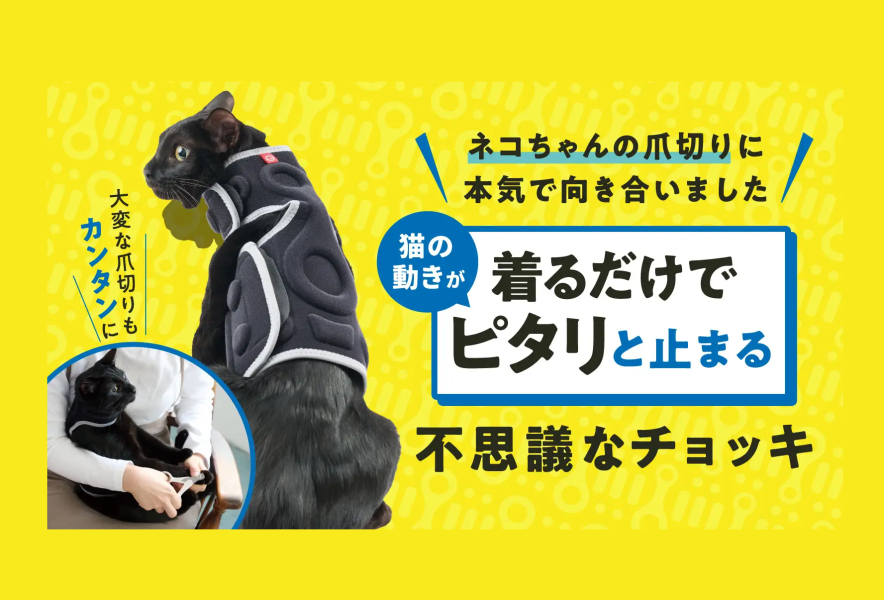 ネコちゃんの爪切りに本気で向き合い誕生!着るだけで動きが「ピタリ」と止まる不思議なチョッキをCAMPFIREにてお得に購入!