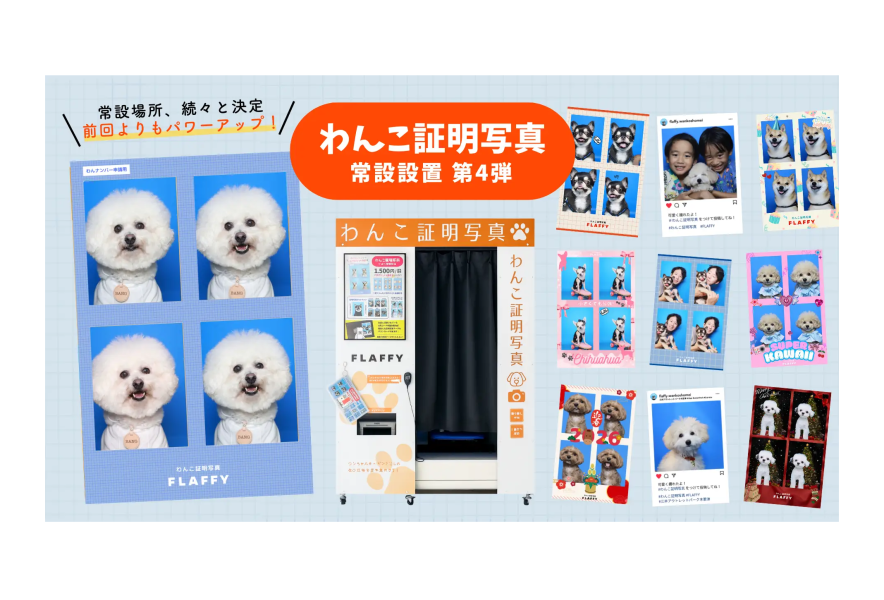 “イヌとヒトの関係をフラットに” をコンセプトに、約17.7万フォロワーの国内最大級の犬情報メディア事業や人間の服を愛犬の服にリメイクするサービスを展開する株式会社FLAFFY(本社:東京都中野区、代表取締役:廣田 智沙/以下 当社)は、大好評の『わんこ専用証明写真機』を、これまでの有明・横浜・経堂での展開に続き、第4弾として千葉県木更津市・金田東にある国内最大級のアウトレットモール『三井アウトレットパーク 木更津』に設置いたします。