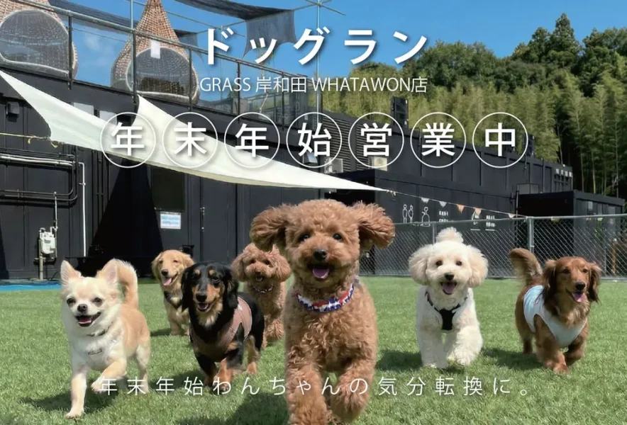 GRASS岸和田WHATAWON店のドッグランは、年末年始も屋外エリアを開放しています。