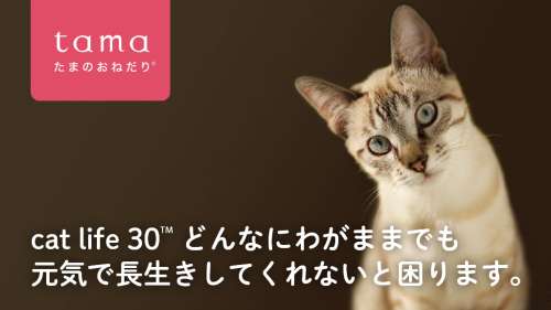 現在、tamaでは「cat life 30」を標語に掲げ、猫を30年生きさせるような食事を提供することを目指しています。